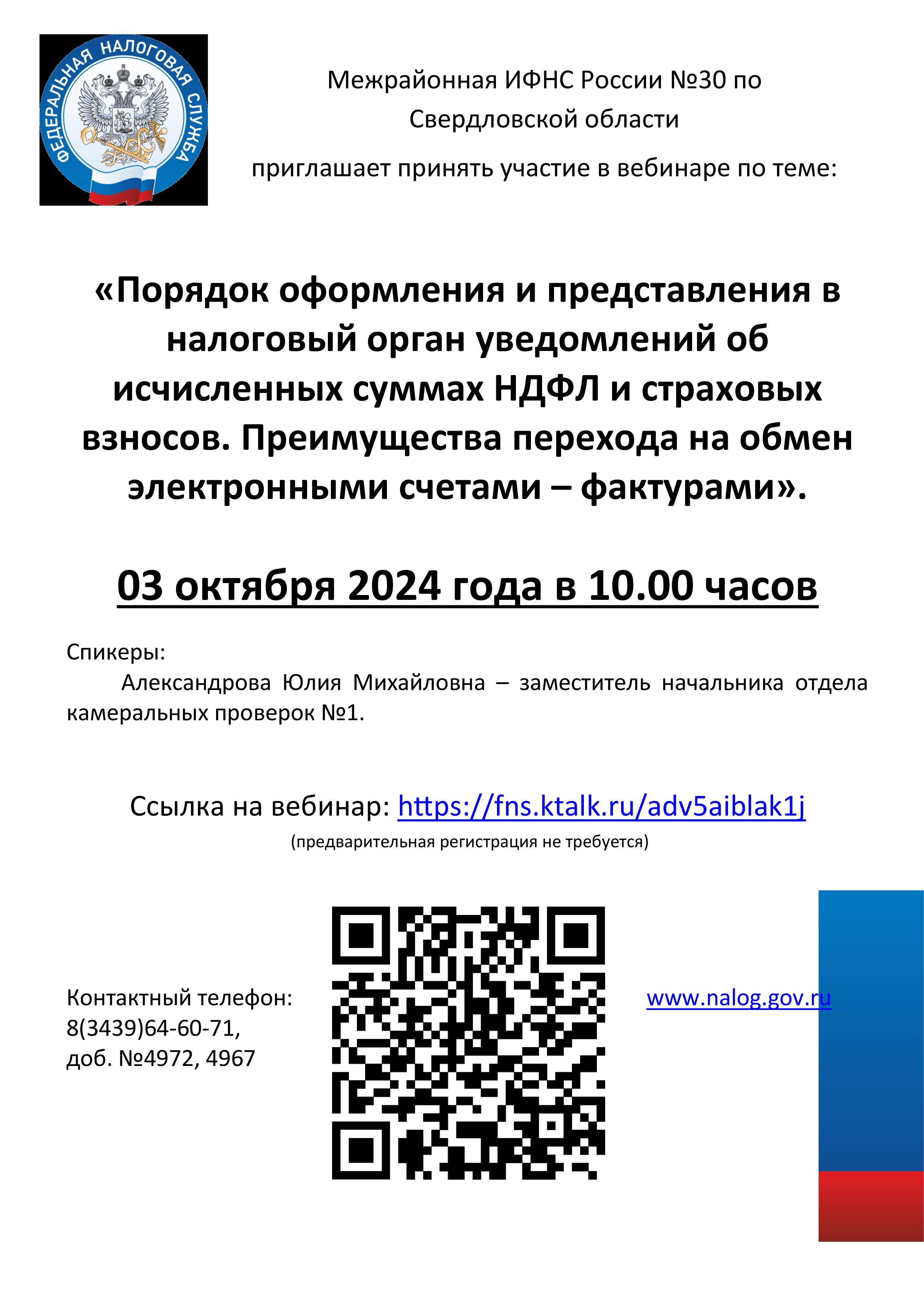 Межрайонная ИФНС России №30 по Свердловской области приглашает принять участие в вебинаре