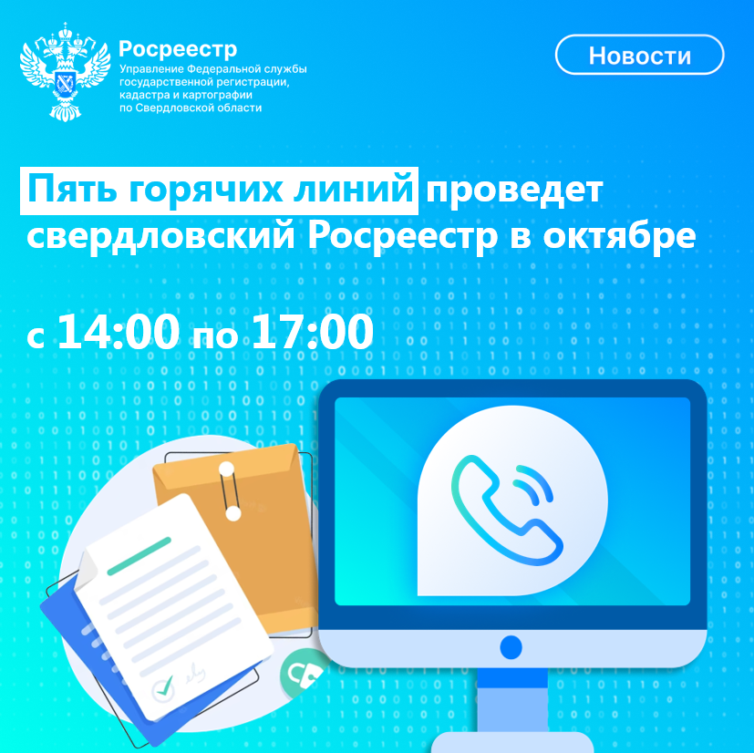 В октябре сотрудники Управления Росреестра по Свердловской области проведут для свердловчан горячие линии по вопросам земли и недвижимости, в рамках которых граждане смогут обратиться к экспертам за правовой и консультационной помощью.