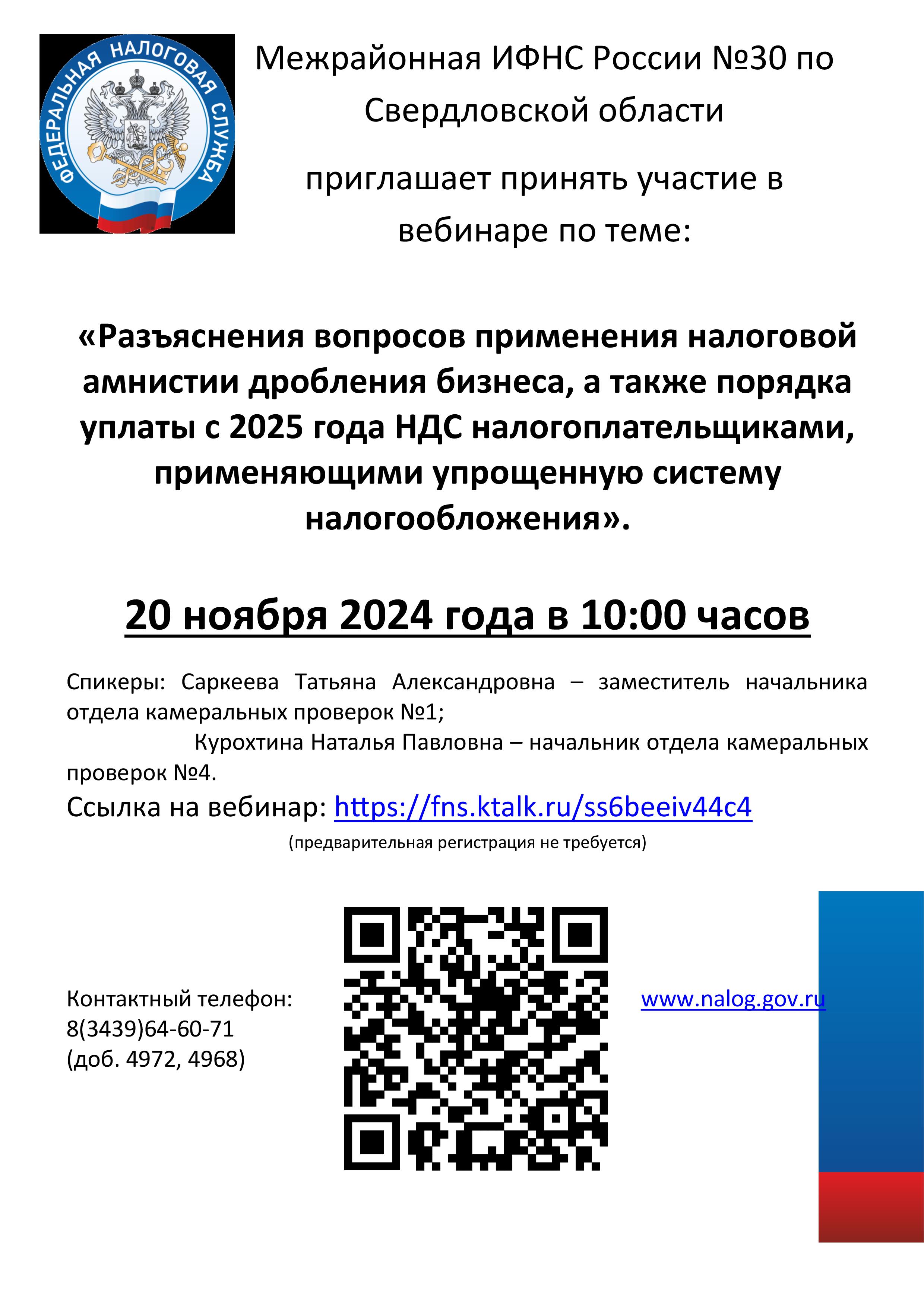 Межрайонная ИФНС России №30 по Свердловской области приглашает принять участие в вебинаре
