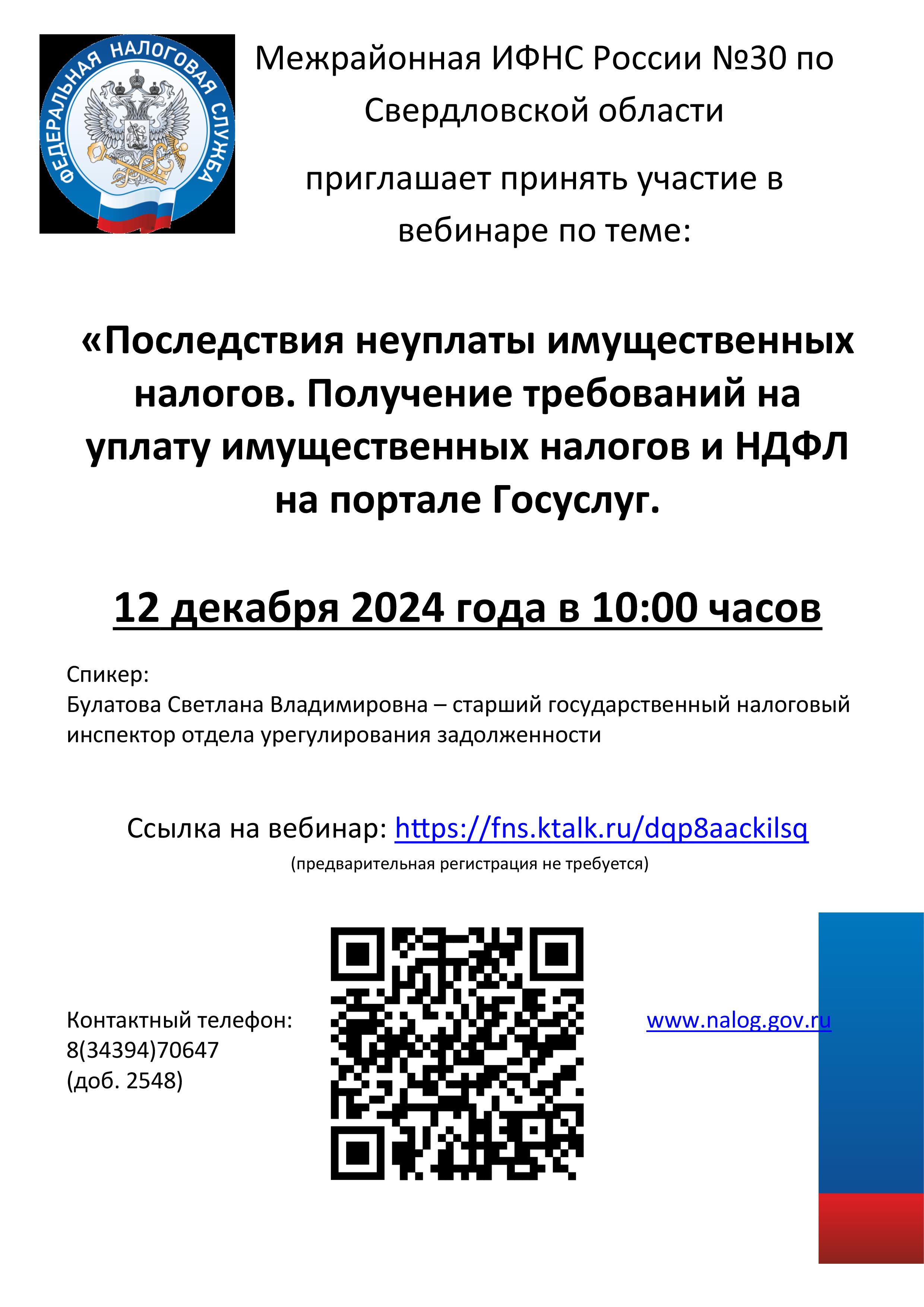 Межрайонная ИФНС России №30 по Свердловской области приглашает принять участие в вебинаре