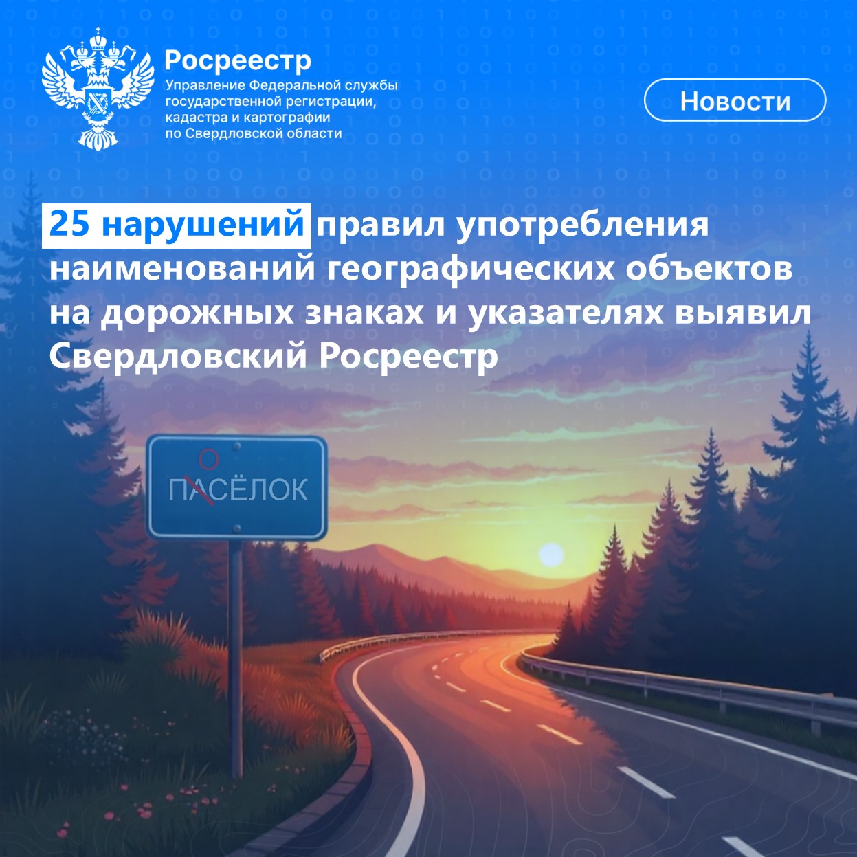 Свердловский Росреестр выявил 25 нарушений правил употребления наименований географических объектов на дорожных знаках и указателях