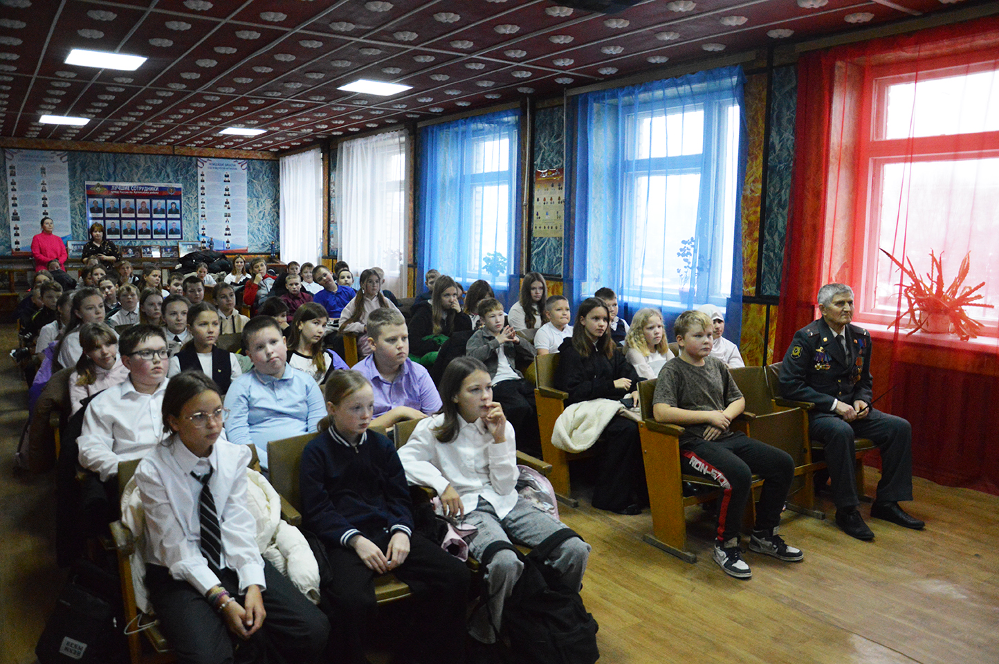 10 ноября заместитель начальника ОМВД России «Артинский», начальник по работе с личным составом, подполковник полиции Ольга Подъячева, начальник штаба майор внутренней службы Леонид Зайцев, и председатель Совета ветеранов при ОМВД, подполковник милиции в отставке Анатолий Пахомов провели "Урок мужества" для учеников МАОУ «АСОШ №6 им. Героя Советского Союза В.А. Шутова».