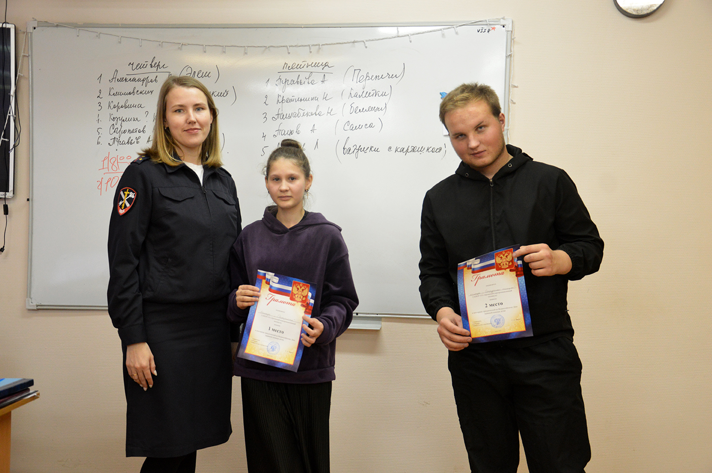Капитан внутренней службы Ульяна Жеребцова юрисконсульт правовой группы ОМВД провела познавательную беседу со студентами первого курса. Основной темой стало разъяснение видов юридической ответственности, предусмотренной законодательством Российской Федерации для несовершеннолетних. Были подробно освещены вопросы уголовной и административной ответственности, а также возрастные пороги, по достижении которых наступает возможность привлечения к данным видам ответственности. Для закрепления материала была организована викторина, направленная на проверку знаний студентов о правах и обязанностях.